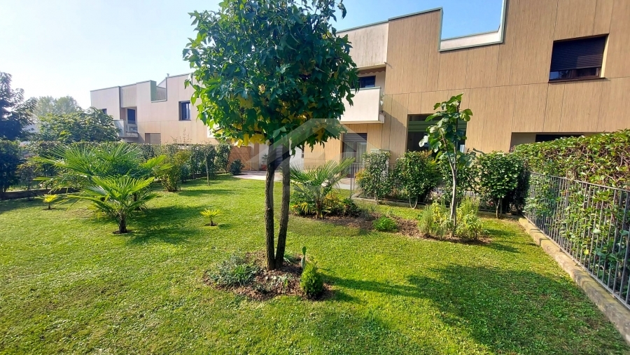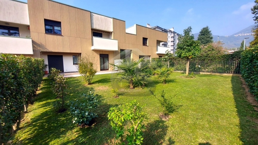 ALZANO LOMBARDO: appartamento di recente costruzione, posto al piano terra di una mini palazzina, composto da ingresso con soggiorno, che affaccia su uno splendido giardino di un ampia metratura, cucina a vista, dalla quale si può accedere ad un secondo spazio esterno piastrellato, dove poter posare un bel gazebo per godersi pranzi e cene in compagnia di amici. Nella zona notte troviamo due camere da letto e un bagno finestrato con doccia. Completa la proprietà un ampio box singolo. L'appartamento è in classe "B" ed è dotato di tutte le nuove tecnologie del momento, dal riscaldamento a pavimento, all'aria condizionata in tutti gli ambienti, alle tapparelle elettriche, alla caldaia con pannello solare termico, alla basculante elettrica, al cappotto esterno per isolamento termico e per finire all'antifurto sia perimetrale che sugli infissi.